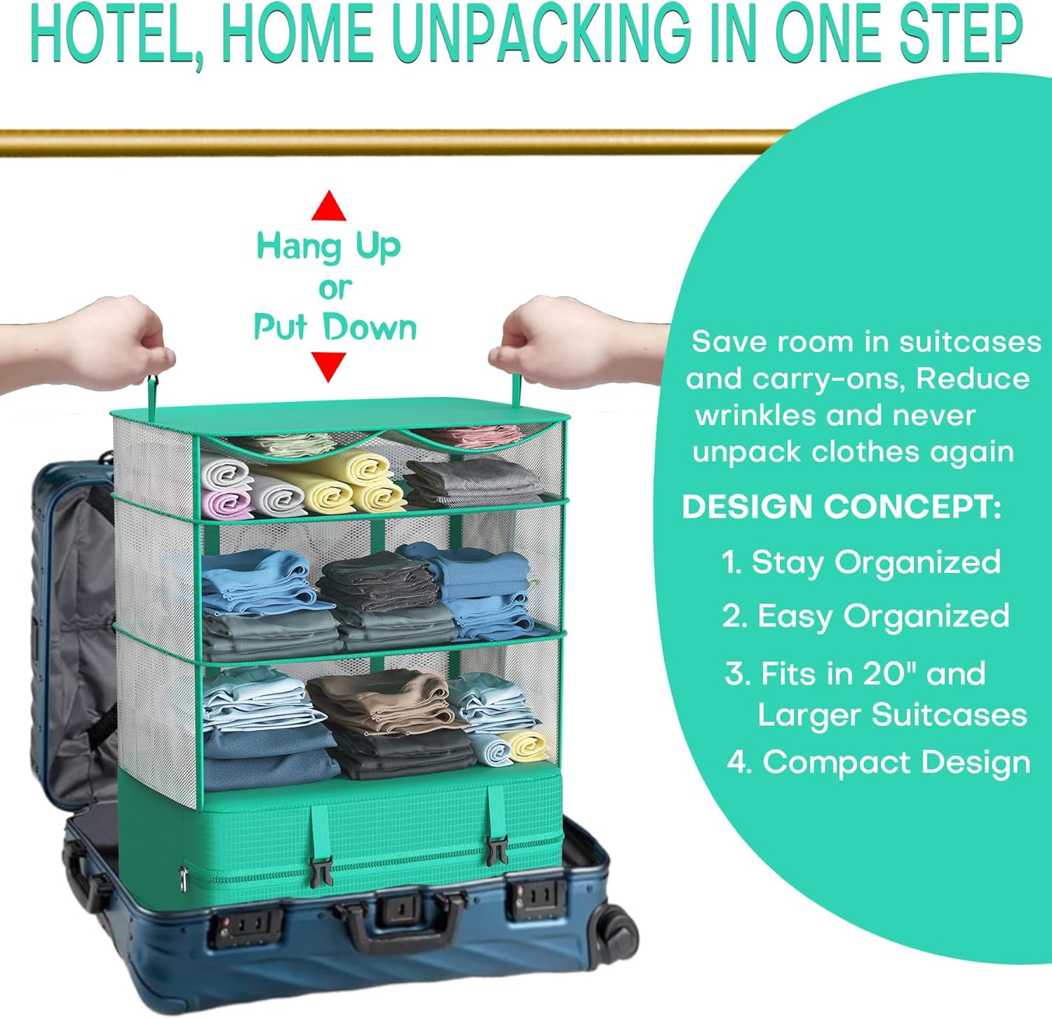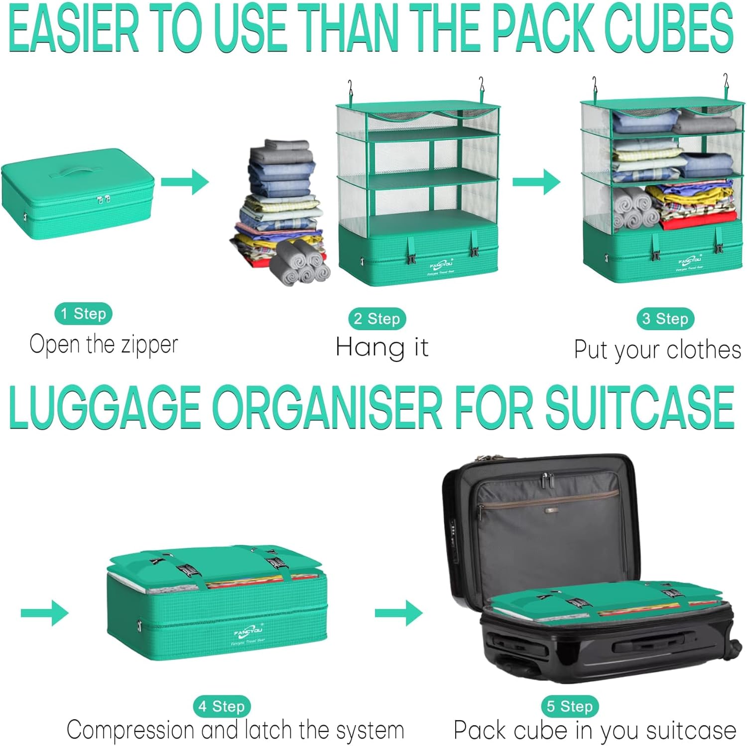 Hanging Packing Cubes for Suitcase Organizer Bags, Upgraded Nylon Fabric Portable Closet 17 * 12 * 24in, Compression Packing and Unpacking In One Step for Business Travel Essentials